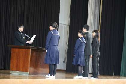3/22 生徒会主催 あいさつキングの表彰 公開日 2019/03/22 更新日 2019/03/22 校長より 生徒会が行った「あいさつキング、クィーン」の表彰がありました。 1・2年生より男女1名ずつが選ばれ、会長より表彰してもらいました。 どの子も、毎朝素敵なあいさつをしてくれます。 今回は「あいさつティーチャー」も表彰しました。 T先生のあいさつや返事はすごいぞ! 見習ってほしいです。 いいね(0)