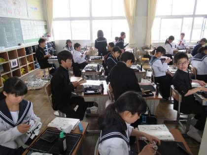 5/9 飛びはねに注意を! 公開日 2019/05/09 更新日 2019/05/09 校長より 1年A組の習字です。 ラスト5分前に行ったので、片づけをしていました。 終わったと思って、安心してはいけません。 最後まで集中だ。 白い制服の人は、飛びはねる墨に要注意ですよ! いいね(0)