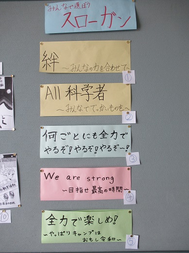 5/10 スローガンの候補 公開日 2019/05/10 更新日 2019/05/10 校長より 2年生の学年掲示板です。 キャンプのスローガン候補が掲示してありました。 どれもいい! どれになるのか? 楽しみですね。 いいね(0)