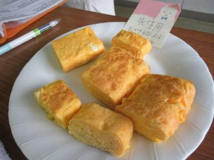 5/31 たまご焼あれこれ 公開日 2019/05/31 更新日 2019/05/31 校長より 3Cの卵焼きの続きです。 (上)とてもきれいな色です。みんなから「きれ〜い」と褒められていました。しかし、切ってみると、ちょっとゆるゆる。 (中)さあ、今から試食です。美味しいでしょうね。 (下)3年の先生用の卵焼き。優しいなと思いきや、5時間目だったので単に食べきれなかった卵焼きでした。先生の夜食かな? いいね(0)