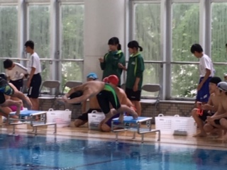 半田市ふれあいプールで半田市市民中学生水泳大会がありました。