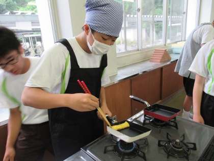 6/7 3D卵焼き作り 公開日 2019/06/07 更新日 2019/06/07 校長より 3年D組の家庭科です。 卵焼き作りでした。 給食前の4時間目なので、卵焼きがよけいに美味しそうです。 慎重に卵をそそぎ、じっくりと焼きます。 作る人は必死です。 調理室全体に美味しそうなにおいがいっぱいです! いいね(0)