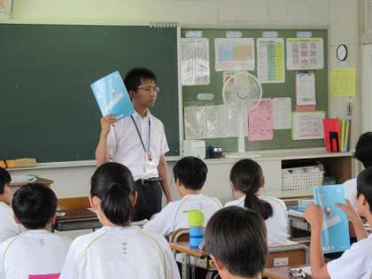 夏休みの宿題を配布していました。