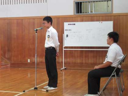 9/26 立ち合い演説会 公開日 2019/09/26 更新日 2019/09/26 校長より 6時間目に生徒会選挙立ち合い演説会を行いました。 立派な演説です。 内容もしっかりと考えています。 全員に役員になってもらいたいくらいです。 選挙管理委員もごくろうさま。 緊張を乗り越えた、度胸一発の体験が人を大きくします! いいね(0)