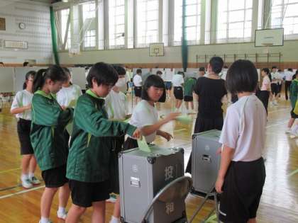 9/26 一票の重みを感じて 公開日 2019/09/26 更新日 2019/09/26 校長より 投票の様子です。 粛々と投票します。 誠実に投票してほしい。 一票の重みを感じてほしい。 中3はあと3年後には投票の権利があるのだから・・。 いいね(0)
