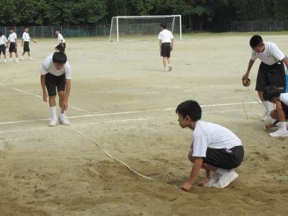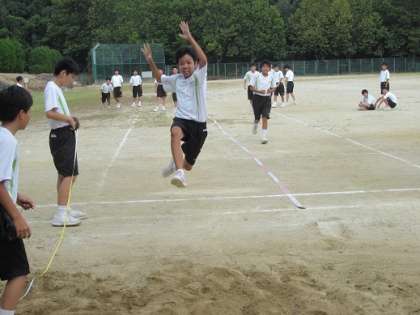 9/27 ジャンプ! 公開日 2019/09/27 更新日 2019/09/27 校長より 1年AB組の男子体育です。 走り幅跳びを行っていました。 自己ベストをめざして、思いっきりジャンプ! 子どもたちは次々と跳びます。 計測もちゃんと自分たちで行っていますね。 いいね(0)