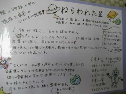 10/4 本の紹介コーナー 公開日 2019/10/04 更新日 2019/10/04 校長より 図書館の前の掲示です。 本の紹介コーナーがあります。 図書委員の生徒が書いた紹介文がとてもいい。 写真やイラストを使い、読みたくなるような工夫がされています。 図書館の前を通ったら、ぜひ見てほしいです。 いいね(0)