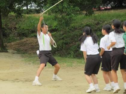 A先生は子どもたちの跳び方を録画し、アドバイスをするのでしょうね。