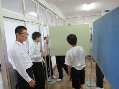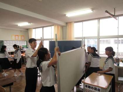 10/11 2B パーテーション 公開日 2019/10/11 更新日 2019/10/11 校長より 2年B組の学級展示の準備です。 なにやらパーテーションを組んでいますね〜。 どんなふうに教室が変身するのでしょうか? いいね(0)