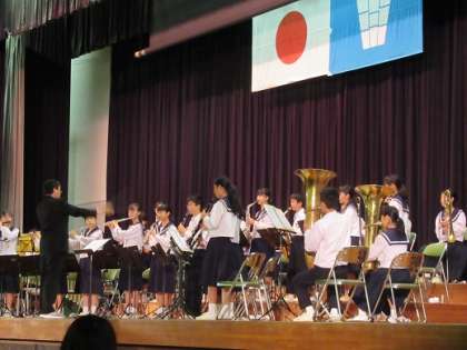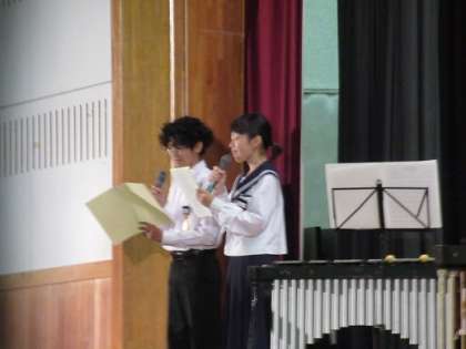 10/19 吹奏楽部の演奏 公開日 2019/10/19 更新日 2019/10/19 校長より 最初のステージ発表は吹奏楽部です。 真剣な演奏あり、ダンスもあり、歌あり、変な人の登場ありの楽しい発表です。 顧問のT先生の粋な演出です。 進行役も自分たちで行います。 とても楽しい時間でした。 いいね(0)