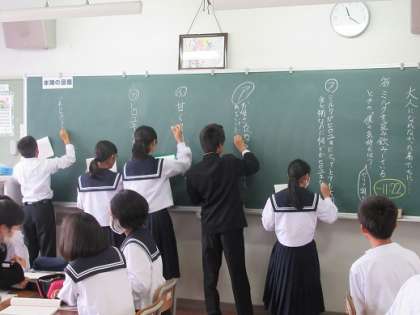 10/29 気持ちをセリフで 公開日 2019/10/29 更新日 2019/10/29 校長より 1年E組の国語です。 主人公の気持ちをセリフで表していました。 盛りあがってます。 グループで相談し、黒板に書きます。 クラス全員が授業に入り込んでいる盛りあがりがとてもいい! いいね(0)