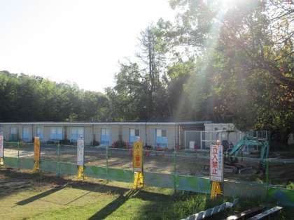 緊急時に消防車等の大型車両が運動場に入ることができるように、入口の拡張工事が始まりました。