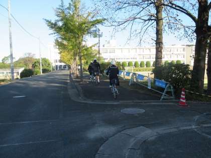 緊急時車両誘導拡張工事のため、生徒が自転車で通る道を一部変更します。