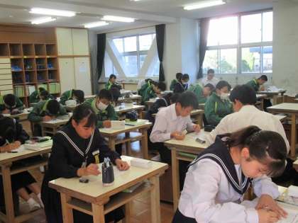 11/6 てん刻 公開日 2019/11/06 更新日 2019/11/06 校長より 2年A組の美術です。 篆刻作りでした。 まずはデザインを決め、先生のOKをもらったら下絵を描きます。 描く面積が狭いので、慎重に描きます。 完成が楽しみです! いいね(0)