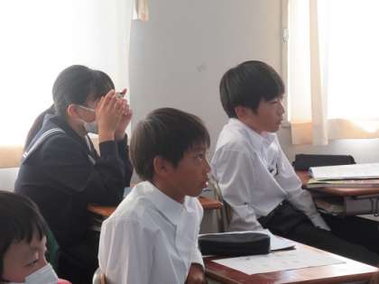 11/7 うさぎリンゴの作り方 公開日 2019/11/07 更新日 2019/11/07 校長より 1年B組の家庭科です。 電子黒板で「うさぎリンゴ」の作り方のビデオを見ていました。 近いうちにうさぎリンゴを実際に作ります。 みんな真剣に見ています。 ちなみにこのビデオは家庭科のN先生の自作です。 分かりやすく作ってありました。 いいね(0)