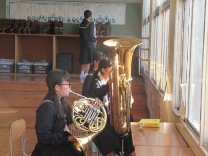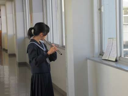 吹奏楽部の朝部です。 個別練習でした。 朝から真剣に音を出していました。