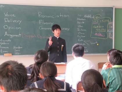 11/21 英語で意見発表 公開日 2019/11/21 更新日 2019/11/21 校長より 3年C組の英語です。 英語で意見発表をしました。 事前に発表内容を考え、英訳しておきます。 ある程度頭に覚えて、みんなの前で発表します。 内容が伝わるには棒読みではいけません。 表情だったり身振りだったりも重要です。 いいね(0)