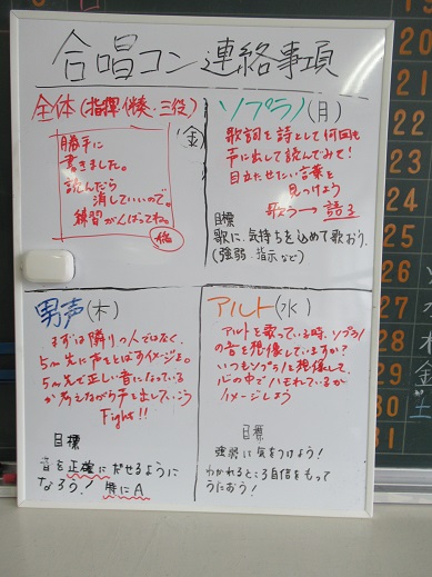 今日の歌目標や注意点などをみんなに知らせるためです。