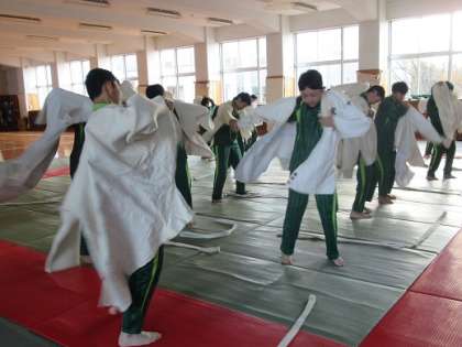 12/4 道着を正しく着る 公開日 2019/12/04 更新日 2019/12/04 校長より 1年CD組の男子体育です。 柔道の授業です。 1年生は初めて柔道を行うので、道着を正しく着る練習をしました。 えりは左上、帯は結んだ後、縦にならないこと。 これを30秒以内に着ること。 一斉によ〜いどん! いいね(0)
