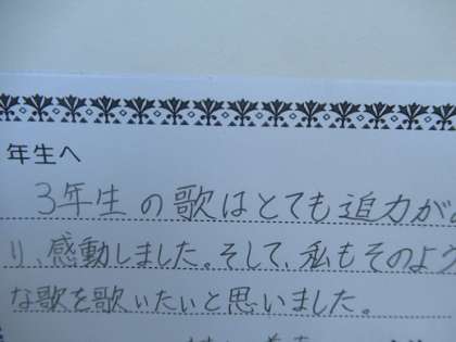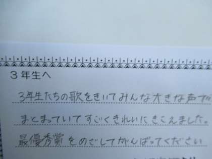 先日、3Cは体育祭の縦割りで同じ黄組だった1Bに合唱を聴いてもらいました。