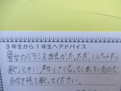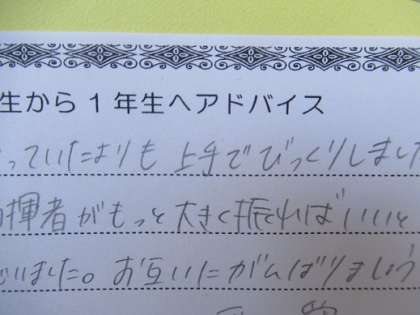 12/4 1Bへ 3Cからのアドバイス 公開日 2019/12/04 更新日 2019/12/04 校長より 1年B組の掲示物です。 同じ黄組だった3年C組からのアドバイスです。 先輩からのアドバイスは大きい。 1年生にとって3年生は大先輩です。 そんな大先輩からのアドバイスをどう活かすか? 活かしたら1Bはもっともっとよくなるぞ。 こんな縦割りのつながりはいいですね! いいね(0)