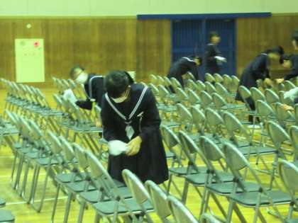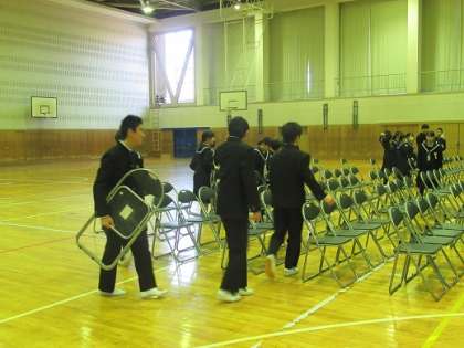 1/10 会場準備、ありがとう! 公開日 2020/01/10 更新日 2020/01/10 校長より 午後から入学説明会があります。 4時間目に2年AB組の生徒が、会場準備をしてくれました。 イスをどんどん運びます。 並べたイスは一つ一つ拭きます。 ありがとう、2年生! いいね(0)