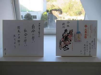 1/10 常中神社の出現! 公開日 2020/01/10 更新日 2020/01/10 校長より 3年生の廊下に常中神社が設けられました。 ここにお参りすると合格します! 見守り隊の方からいただいたお守りもあります。 子どもたちのためにいただきました。 ありがたいことです。 いいね(0)