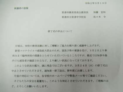 3/10 修了式の中止について