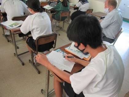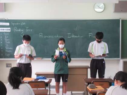 9/23 物語を英語で読む 公開日 2020/09/23 更新日 2020/09/23 校長より 3年E組の英語です。 グループで物語を英語で読みました。 英語でも日本語と同じように気持ちを込めて読みます。 聞いている人も、どこがよかったかをメモします。 練習の成果が出ていましたよ。 いいね(0)