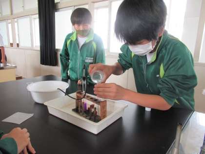 9/24 身の回りの物質で 公開日 2020/09/24 更新日 2020/09/24 校長より 1年E組の理科です。 身の回りの物質で気体を発生させる実験をしました。 入浴剤、卵のから、重曹、じゃがいもを使います。 これに酢や水などを混ぜて見事に気体が発生しました。 子どもたちも気体にはびっくり! いいね(0)