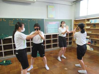 (下)寸暇を惜しんで演舞の練習をする女の子たち。