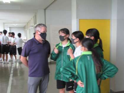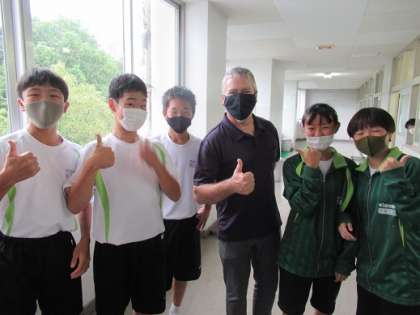 9/25 ケビン先生、久しぶり! 公開日 2020/09/25 更新日 2020/09/25 校長より ALTのケビン先生が来校しました。 現常中生は小学校の時にお世話になっています。 ケビン先生は、以前常中でも教えていたので、知っている先生もいます。 みんな、懐かしがっていましたよ! いいね(0)
