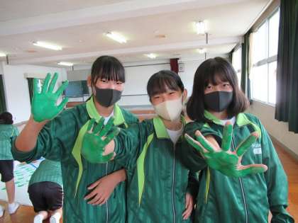 10/5 1B女子の手形 公開日 2020/10/05 更新日 2020/10/05 校長より 1年B組女子が手形を押しました。 緑の手形です。 ジャージの色と手形の色が同じです。 ちょっとくらい色がついても分かりませんね。 いいね(0)
