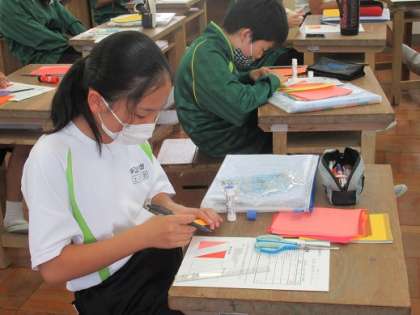 10/6 配色練習 公開日 2020/10/06 更新日 2020/10/06 校長より 1年D組の美術です。 色紙を使って配色練習をしました。 暖かく感じる配色と寒く感じる配色を、自分で作ります。 微妙に色は違いますが、どの子も上手に作っていました。 いいね(0)