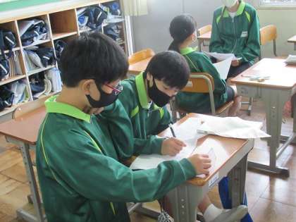 10/9 スピーチの練習 公開日 2020/10/09 更新日 2020/10/09 校長より 1年C組の国語です。 構成を意識したスピーチを考え、練習していました。 題目は3つから選びます。 ・学校は制服がいいか、私服がいいか。 ・朝食はパンが適しているか、ご飯が適しているか。 ・旅行に行くなら東京がおすすめか、大阪がおすすめか。 おもしろいですね。 スピーチを聞きたいです。 いいね(0)