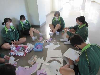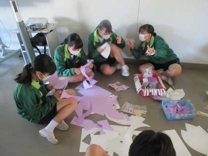 10/13 紫の扇子 公開日 2020/10/13 更新日 2020/10/13 校長より 3年D組の女の子たちです。 紫の扇子を作っています。 体育の部の応援グッズです。 センスがいいね。 かっこいい! こんなひとときがいいんですよね。 いいね(0)