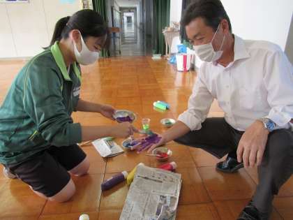 ビッグアートに、校長も手形を押しました。