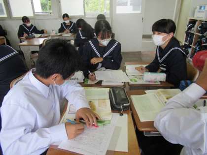 10/23 竹取物語 公開日 2020/10/23 更新日 2020/10/23 校長より 1年E組の国語です。 竹取物語の授業でした。 「今は昔、竹取の翁といふものありけり・・・」 昔も暗唱した覚えがあります。 子どもたちは古い仮名遣いに四苦八苦しているようでした。 いいね(0)