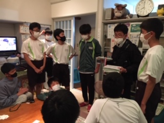 先生は健康状態の把握と明日の連絡をします。