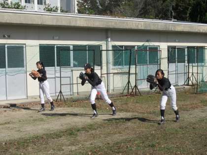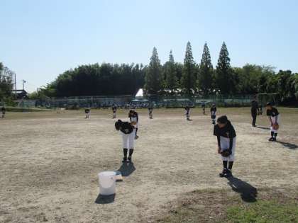 ソフト部が練習を見に行くと必ずみんなであいさつをしてくれます。(上)