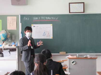 11/6 スススとズズズ 公開日 2020/11/06 更新日 2020/11/06 校長より 1年A組の数学です。 図形の平行移動を勉強していました。 先生が説明します。 T:「この三角形がスススとそのまま移動するのが平行移動なのです。」 S:「先生、ズズズではいけないの?」 T:「やっぱりスムーズに平行移動するとスススなんです。」 子どもの発想はおもしろい! いいね(0)