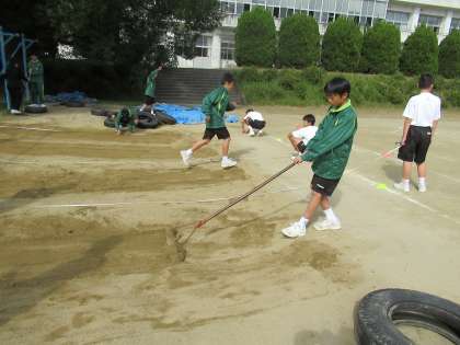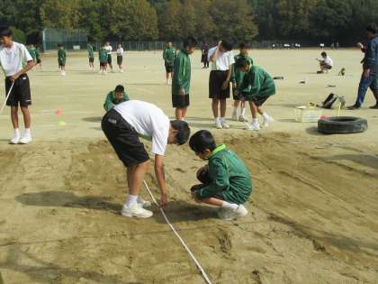 11/6 交代しながら 公開日 2020/11/06 更新日 2020/11/06 校長より 1年CE組の男子体育です。 走り幅跳びの授業です。 計測は自分たちで行います。 計る人、土をならす人は交代で行います。 大事なことですね。 みんなしっかりやっていました。 いいね(0)