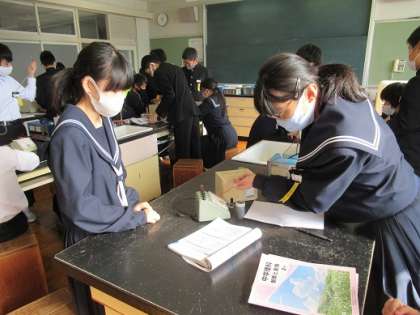 11/11 セッティング 公開日 2020/11/11 更新日 2020/11/11 校長より 2年A組の理科です。 電流の実験でした。 先生の説明が終わったら、自分たちで実験のセッティングします。 教科書を見ながら間違えないようにします。 この後、ちゃんと実験ができたでしょうか? いいね(0)
