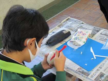 11/13 質感をあらわす 公開日 2020/11/13 更新日 2020/11/13 校長より 2年E組の美術です。 本物そっくりに作る授業です。 野菜や果物の質感をあらわすために、へらを使います。 表面を滑らかにしたり、筋を入れたり。 子どもたちは集中していました! いいね(0)