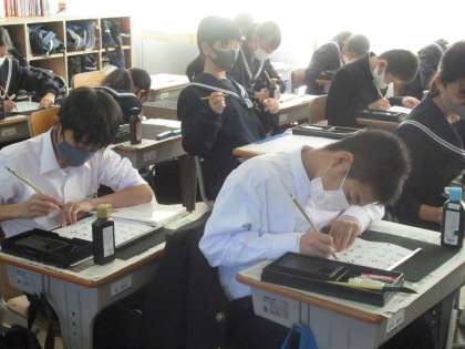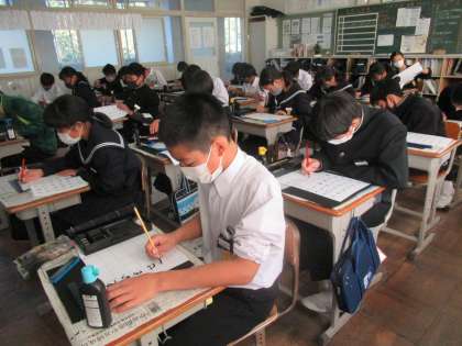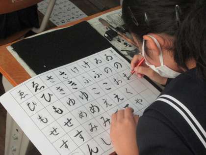 11/18 仮名を楷書で書く 公開日 2020/11/18 更新日 2020/11/18 校長より 1年E組の書道です。 仮名を楷書で書く練習をしました。 小筆で仮名を書くのは難しいです。 大筆で清書し、その後小筆で名前を書くときに失敗をすることがあります。 E組の子どもたちは上手になったと思いますよ。 いいね(0)