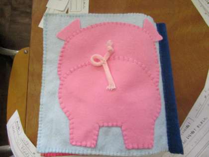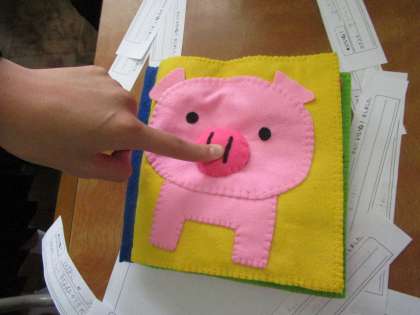 11/20 こんなかわいい作品が・・・2 公開日 2020/11/20 更新日 2020/11/20 校長より 2Cの作品(絵本)です。 かわいさいっぱい。 工夫がいっぱい。 (上)絵本の表紙にぶたさんがいます。鼻を押すと「ブー」と鳴きますよ。 (中)ページをめくると時計が出てきます。数字は取り外しできます。 (下)表紙裏には、ぶたさんのかわいいお尻が・・・。 いいね(0)