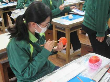 11/20 本物そっくりに作る 公開日 2020/11/20 更新日 2020/11/20 校長より 2年E組の美術です。 野菜や果物を紙粘土で本物そっくりに作っています。 いよいよ彩色の段階に入った人もいます。 ここからが特に大事ですね! いいね(0)