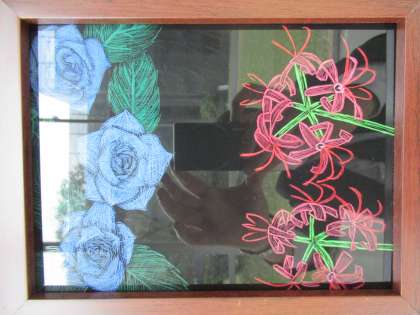 2年F組の美術作品「アートグラス」です。 光の反射と横向きで見にくくてすみません。