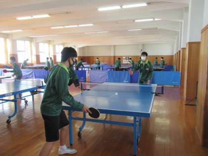 1/29 卓球 公開日 2021/01/29 更新日 2021/01/29 校長より 3年AE組の男子体育です。 卓球をしていました。 相手を順番に変えながら、試合形式で打ち合います。 初心者も経験者も、うまい子もそうでない子も、みんなが楽しそうです。 あれ、裸足? 体育館シューズを忘れたそうです。 いいね(0)