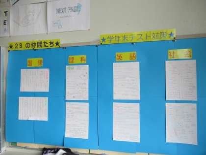 2年B組では定期テスト時に、テスト対策が掲示されます。